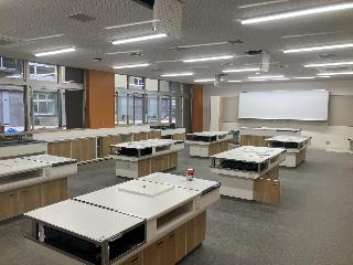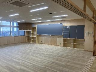 1階の教室や建物の外部で仕上げ工事が進んでいます。